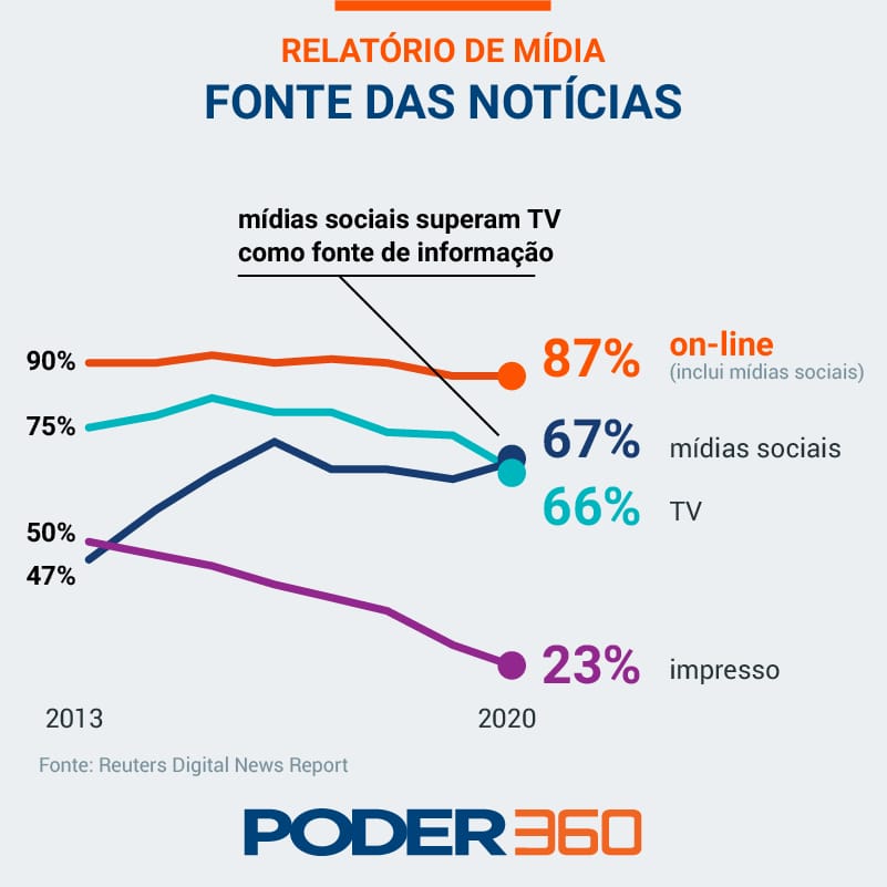 📲 Redes sociais passam a TV como principal fonte de notícias nos EUA